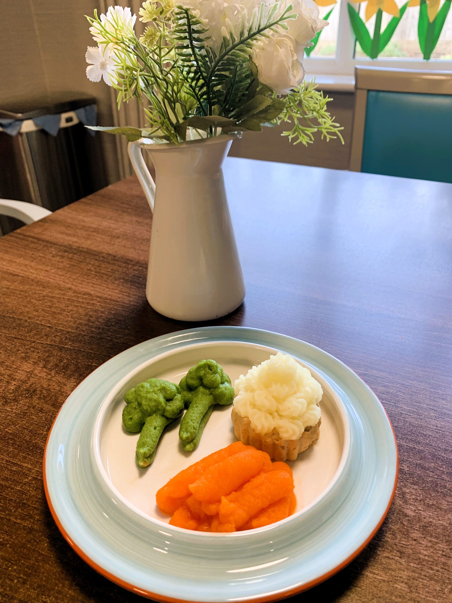 Our chefs use an innovative, specialist approach to create delicious, fresh meals that are both safe and satisfying. Whole, fresh ingredients are cooked until just al dente, preserving vital nutrients, then blended into a thick, smooth consistency without adding water or thickeners. The food is then piped into shapes that resemble the original ingredients, making the dish instantly recognisable.